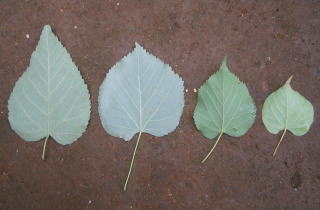 左からボダイジュ(中国種)、ナツボダイジュ、シナノキ(在来種)、フユボダイジュ