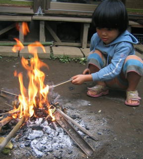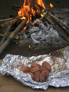 アルミ箔でくるんで火の中へ