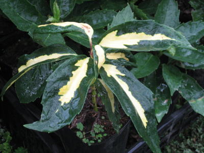 斑入りアオキ 緑地に鮮明な黄中斑