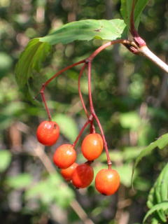 白の小花をたくさん付け、赤実がつりさがります