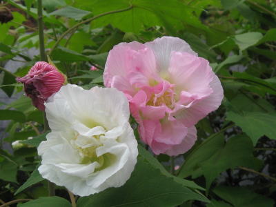 朝咲いた花が白花、その花が1日のうちにピンクに変わる